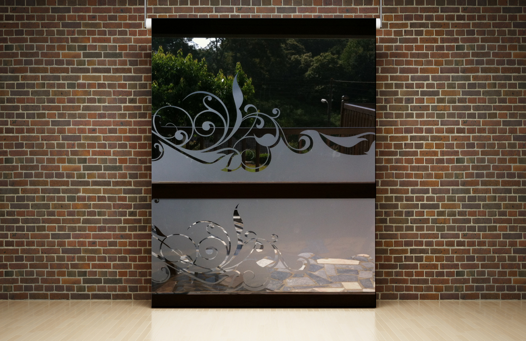 Conception d'un visuel pour décoration de la vitrine, décliné sur bâche et panneaux intérieurs