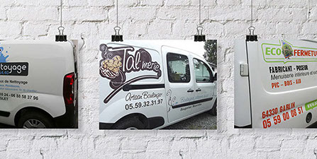 Votre logo, votre slogan ou vos coordonnées peuvent ainsi être apposés sur un visuel compatible avec tous les types de véhicules (voitures utilitaires, camions, bateaux...).