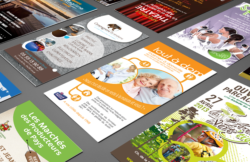Amalgame de cartes, prospectus, 4x3, e-mailing