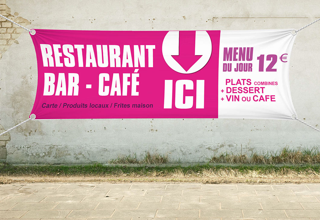 Conception d'une bâche publicitaire placée aux abords du magasin