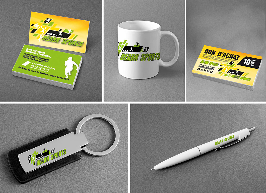 Conception d'un visuel pour la décoration du magasin, marquage véhicule, bâches, mugs, cartes commerciales et de fidélité
